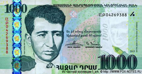 Armenia new sig/date (2015) 1,000-dram note (B315b) confirmed