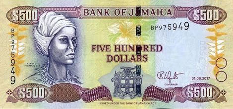 Jamaica new date (01.06.2018) 500-dollar note (B240j) confirmed