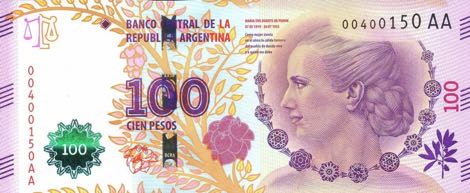 In July 2012, the Central Bank of Argentina issued a 100 Peso commemorative note bearing the image of the former first lady, Eva ‘Evita’ Peron to mark the 60th anniversary of her death.