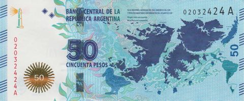 According to a BBC article dated 3 April 2014, Argentina "launched" (it's unclear if it was merely unveiled or actually introduced into circulation) a new 50-peso note commemorating the 32nd anniversary of the invasion of the archipelago known as the Falklands to Britian and the Islas Malvinas to Argentina.
