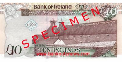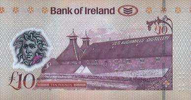 According to a February 12, 2008 report in Drinks International, the Bank of Ireland will issue 5-, 10-, and 20-pound notes, the backs of which feature the Diageo’s Bushmills whiskey distillery in celebration of the distillery’s 400th anniversary. Stephen Kirkpatrick, chief executive of Bank of Ireland Northern Ireland, said: “Because Bank of Ireland is one of the leading business banks in this region, we felt our new notes should feature a business that is symbolic both of our heritage and of our skill in crafting products for a global market.”