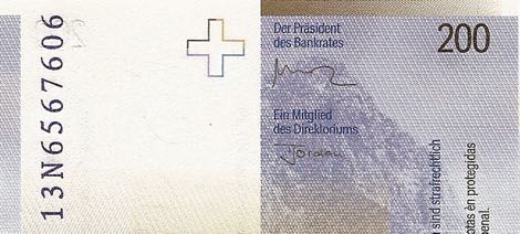Switzerland new sig/date (2010) 200-franc note confirmed