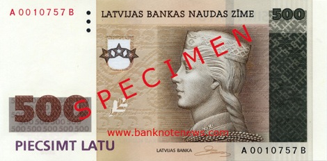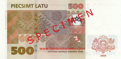On January 19, 2009, the Latvijas Banka introduced a revised 500-lat note dated 2008. It incorporates the same upgraded security features as the 100-lat note issued on May 21, 2007.