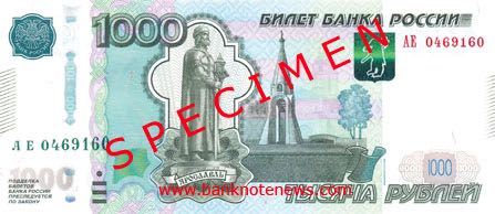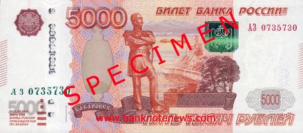 Russia issues new 5,000-ruble note dated 1997 (Pick 278)
