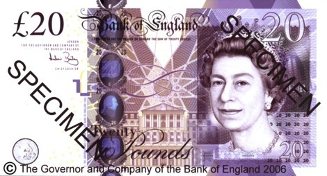 According to a Bank of England press release dated 8 March 2010, the 20-pound (US$30.10) note with the portrait of composer Sir Edward Elgar on back will cease to be legal tender after 30 June 2010. “This note has been gradually replaced by the Adam Smith £20 which was introduced in 2007. Announcing this today, the Bank of England assured holders of the Elgar £20 banknote that they could certainly use the notes up to, and including, 30 June. After that date the note will no longer have ‘legal tender’ status. The note will not have to be accepted in payment, or in change, in retail outlets after this date.”