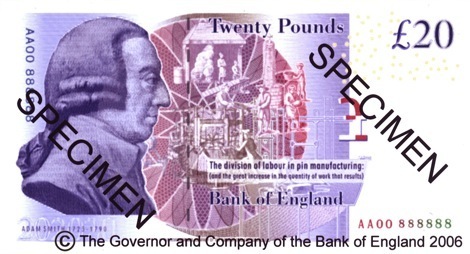 Today the Bank of England issued a new £20 featuring Adam Smith, one of the fathers of modern economics. This is the first design in a new series of notes from the bank known collectively as “Series F.”