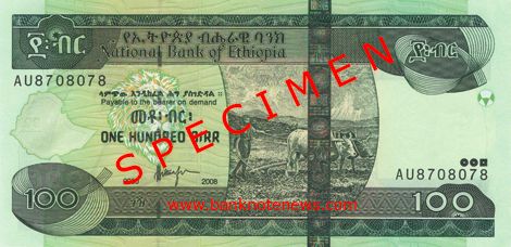 Ethiopia new date (2012) 100-birr note confirmed
