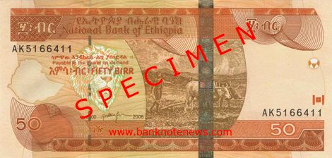 The following 50- and 100-birr notes are identical to Pick 51 and 52, respectively, except for the new date of 2008. According to the National Bank of Ethiopia, the other denominations were not and will not be issued with this date.