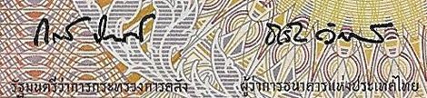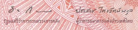 The following 20-, 100-, and 1,000-baht notes were issued in 2009 and feature new signatures of Korn Chatikavanij (Finance Minister) and Tharisa Watthanakase (Governor).