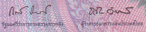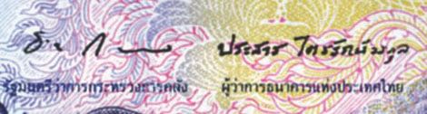 1,000 baht (US$33.50), no date. Like P115, but new signatures (Thirachai Phuvanatnaranubala and Prasarn Trairatvorakul).